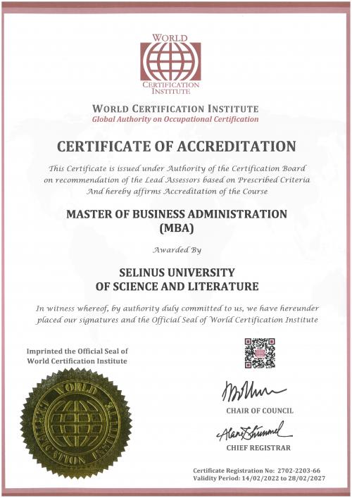 Selinus University of Science and Literature has the WCI (World Certification Institute) accreditation