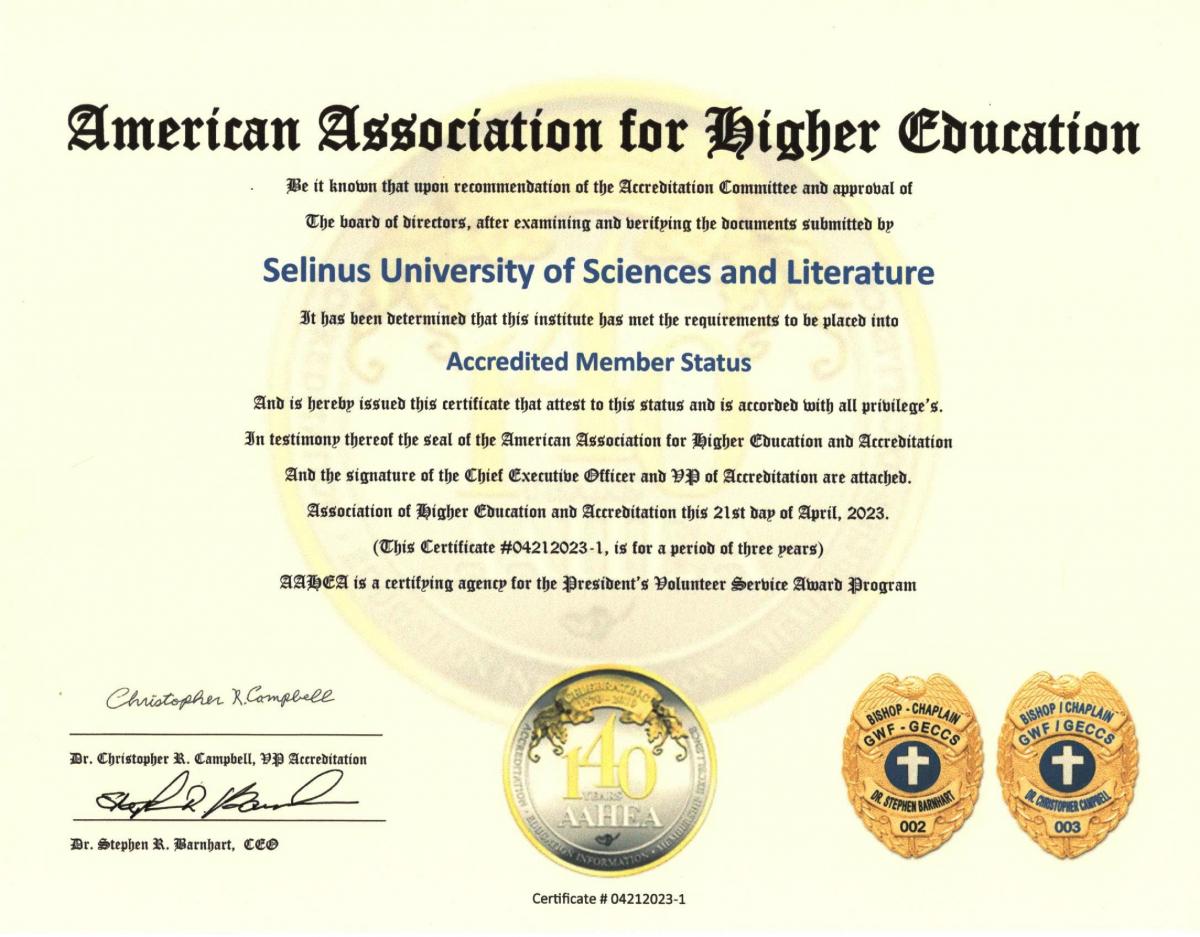 Selinus University has been granted full accreditation by the AAHEA (The American Association for Higher Education)